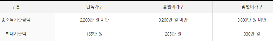 - 홀벌이 가구: 배우자의 총 급여액 등이 300만 원 미만, 배우자가 없어도 부양 자녀(18세 미만) 또는 70세 이상 직계존속(각각의 연간 소득금액이 100만 원 이하)이 있는 가구