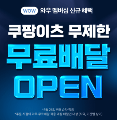 ● 쿠팡 와우 멤버십 회원만 배달비 무료 이용가능(24년 3월 26일)