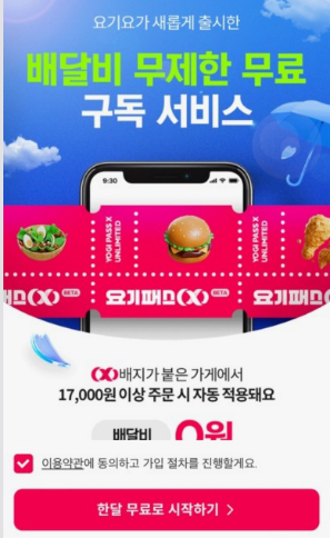 ● 요기요 앱에서 회원가입하면 배달비 무료 이용 가능( 24년 4월 5일부터)